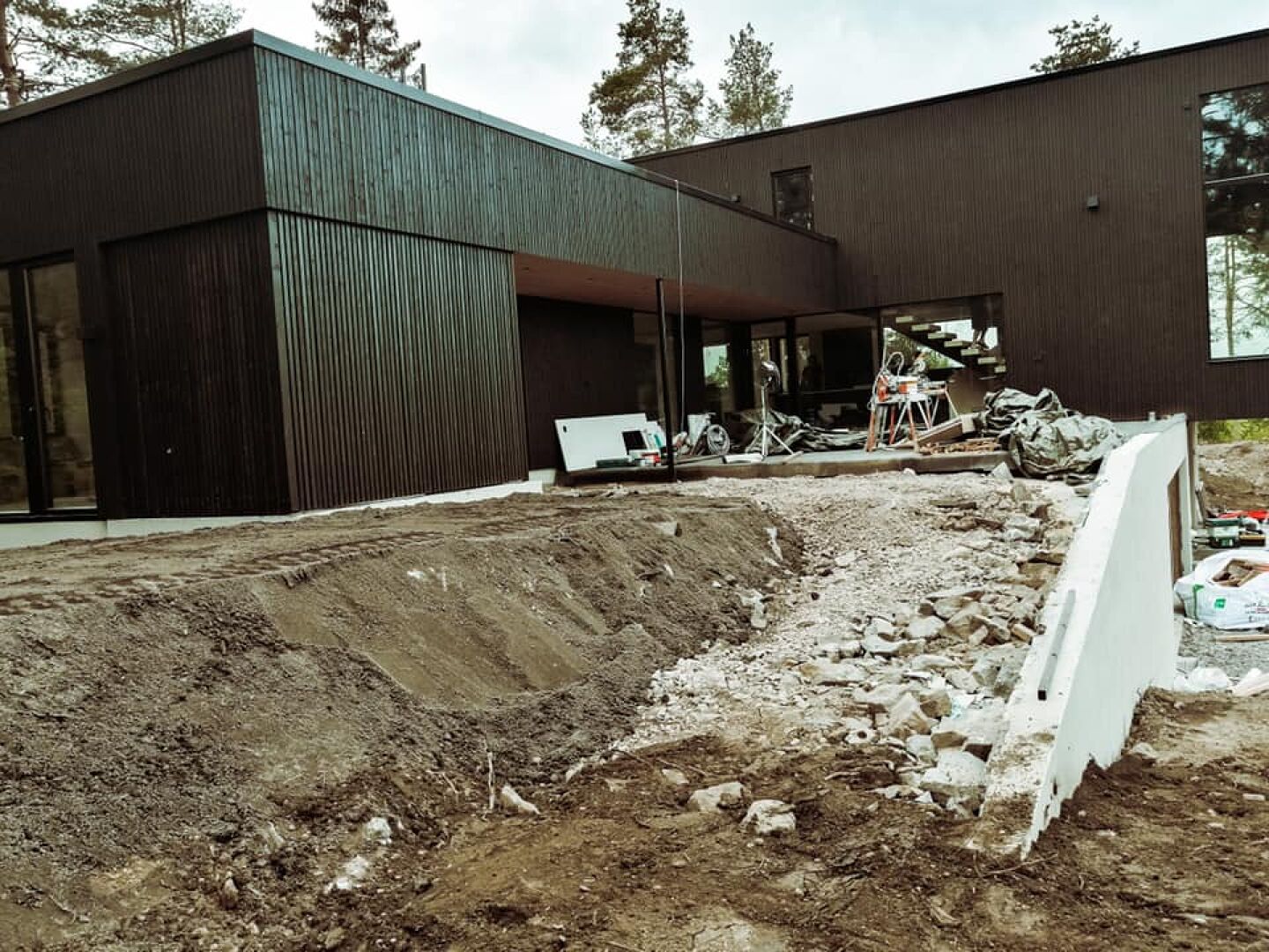 - Drenering og legging av drenerende masser rundt hus