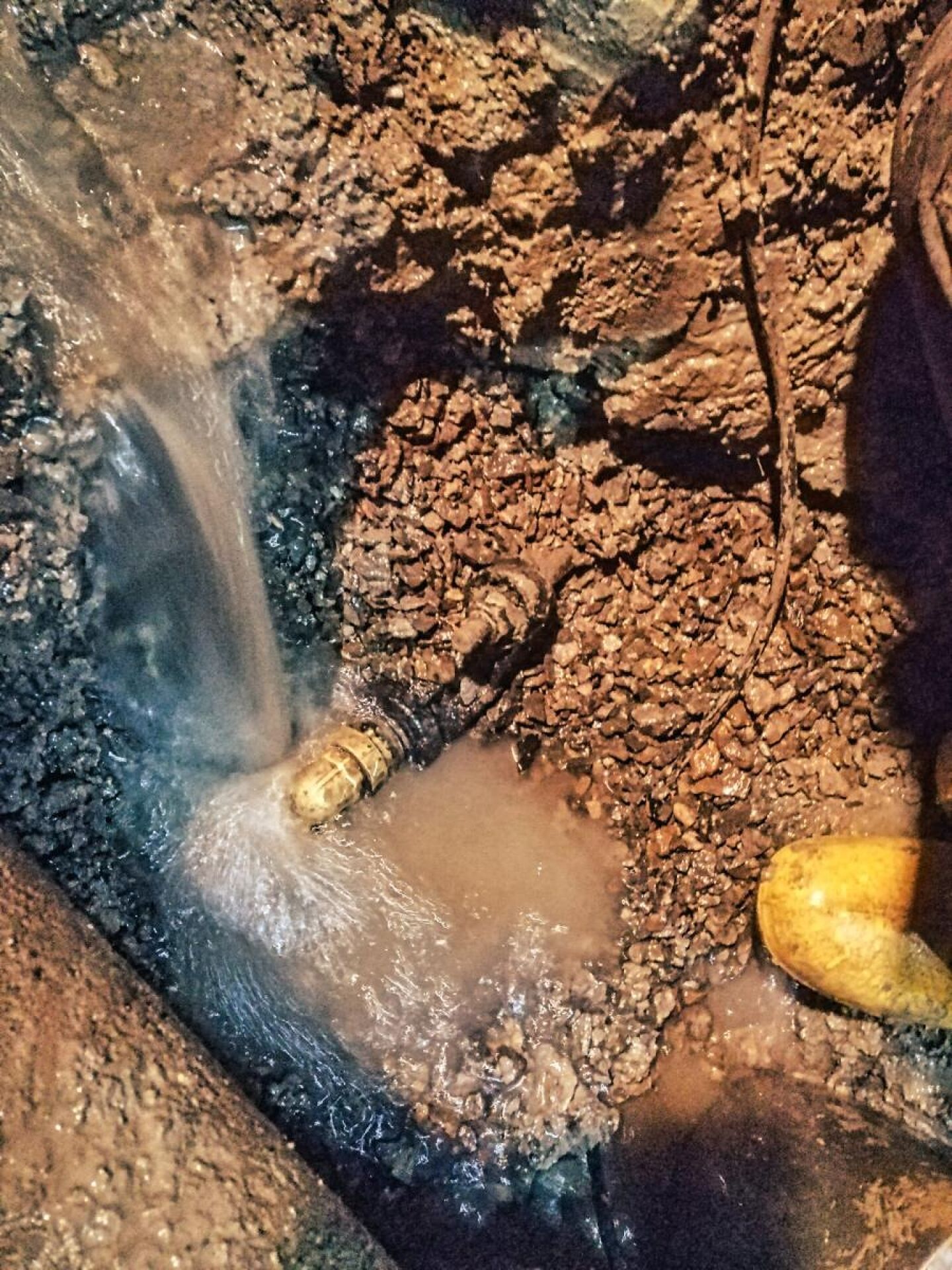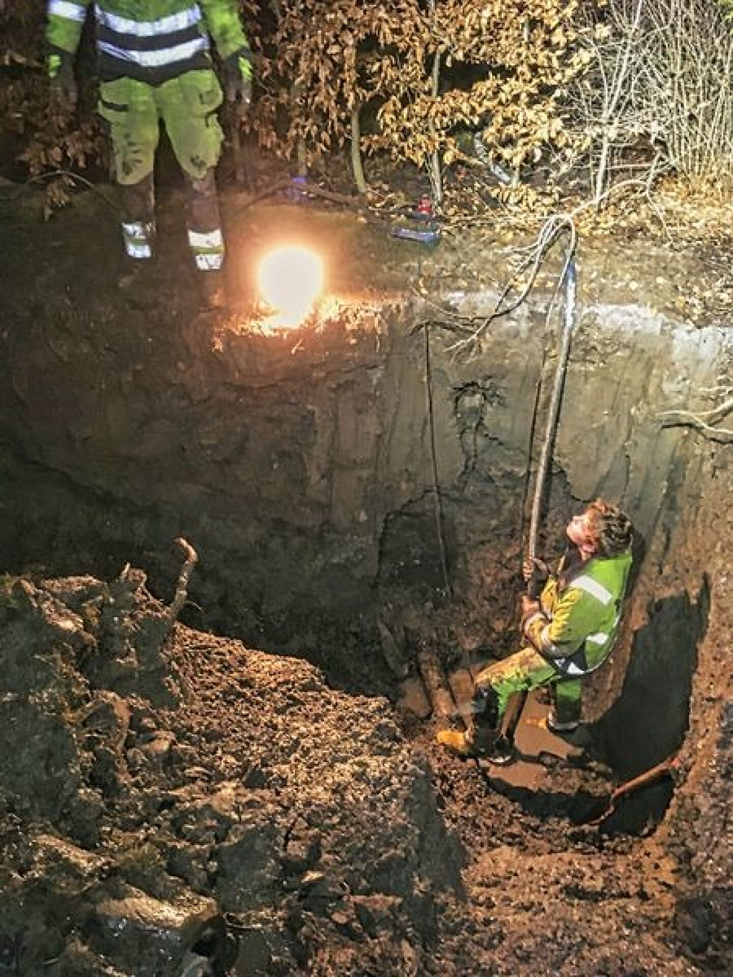 !!FLOMVARSEL!! Neida, men når vannet flommer opp fra plen er vi raskt på plass med gravemaskin og pumper for å finne lekkasjen